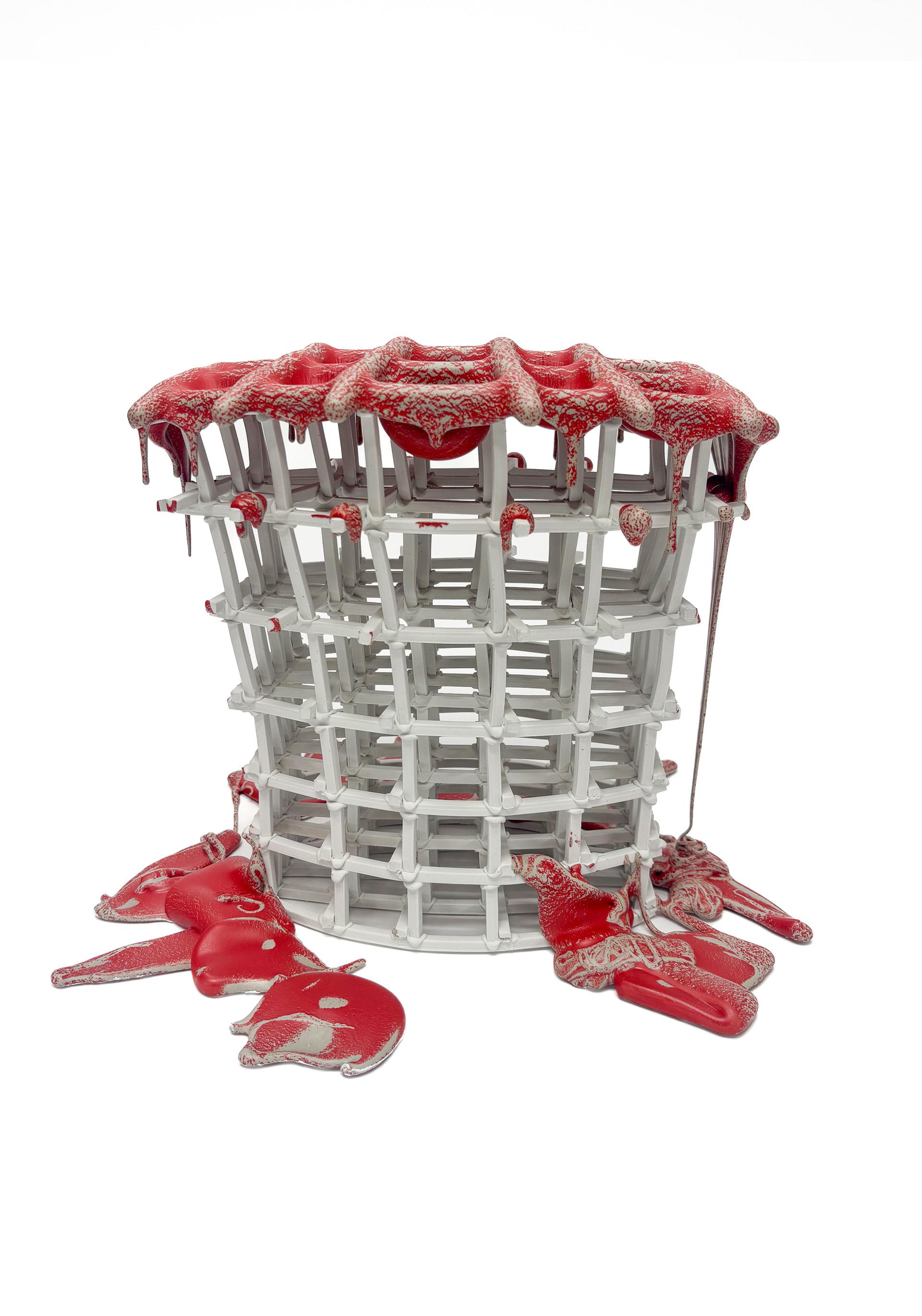我在作品中探索转变,聚焦于结构与材质的双重维度。窑炉成为解构的载体。我创作的瓷质网格系统常始于数字渲染图,再经手工精雕细琢而成。这些结构上覆盖了充满流动、伸展效果的表层,在烧制应力作用下任其扭曲或塌陷。它们揭示了软硬之间的关系、流动的膜状,以及这些对立元素交汇的瞬间。作品力求将精心构筑与不可预测性相融合,将无需状态的一瞬间定格在作品中。