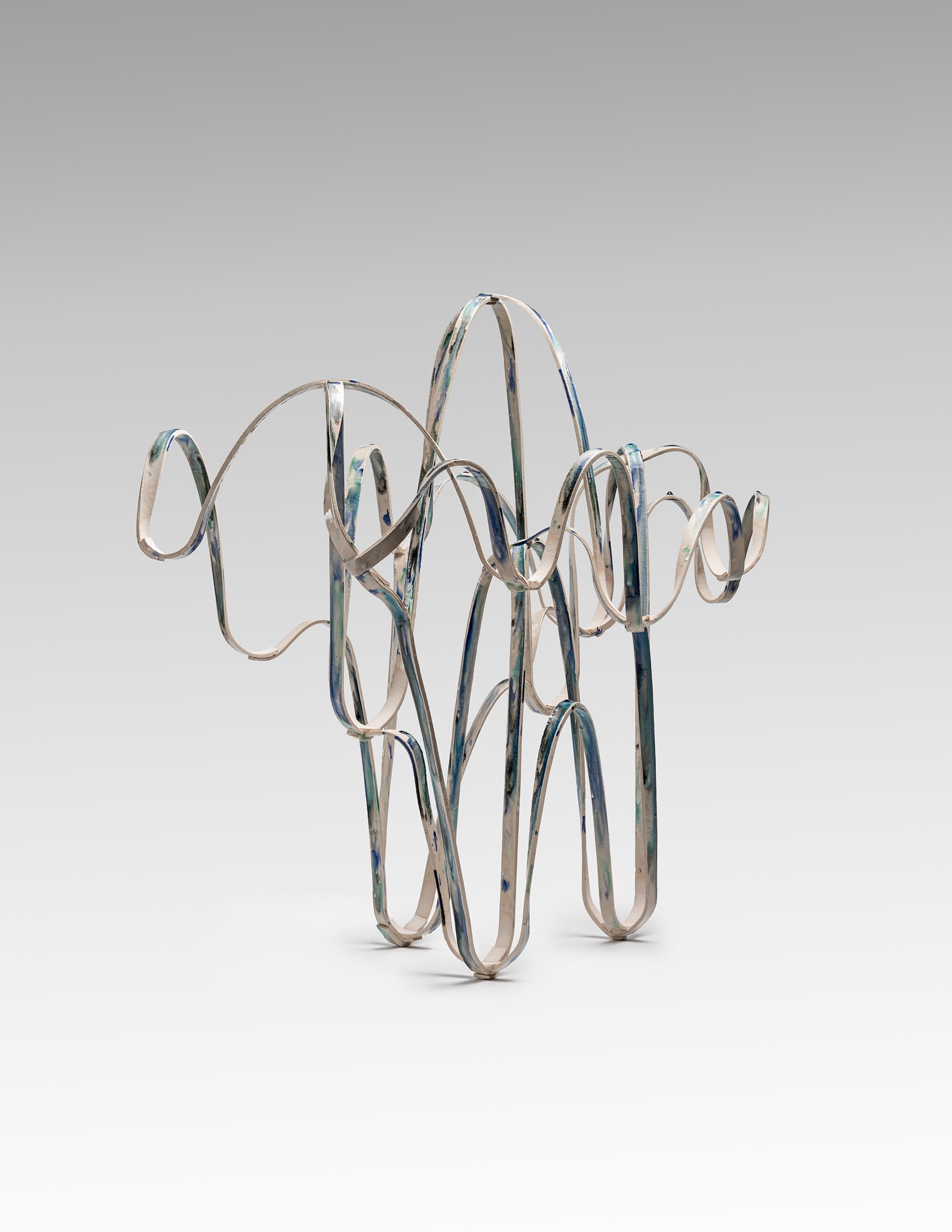 在陶瓷制作过程中,我们利用地心引力使泥条自然下垂。而在烧制时,随着温度的升高,泥条会更自然的变化,形成了流畅的曲线。此时,釉料也随着泥条的曲线顺势流淌。烧制完成后,一切就像按下了暂停键,飞扬的飘带突然静止,流动的山泉瞬间定格,这件作品是动与静的结合。 作品在制作时使用了纤维粘土,使泥条的柔韧性和延展性能更好的发挥。作品体量较大,由二人齐心协力完成,制作过程精细谨慎,仿佛大家都停止了呼吸。 我们一直以泥条作为媒介来创作作品。之前我们使用密集无序的编织方法创作了《编织成器》系列。如今,我们使用新的组合方式,使作品给人带来新的感受。每一次新的感受都鼓励着我们继续前行,不断挑战工艺难度,打破传统陶艺的壁垒。
