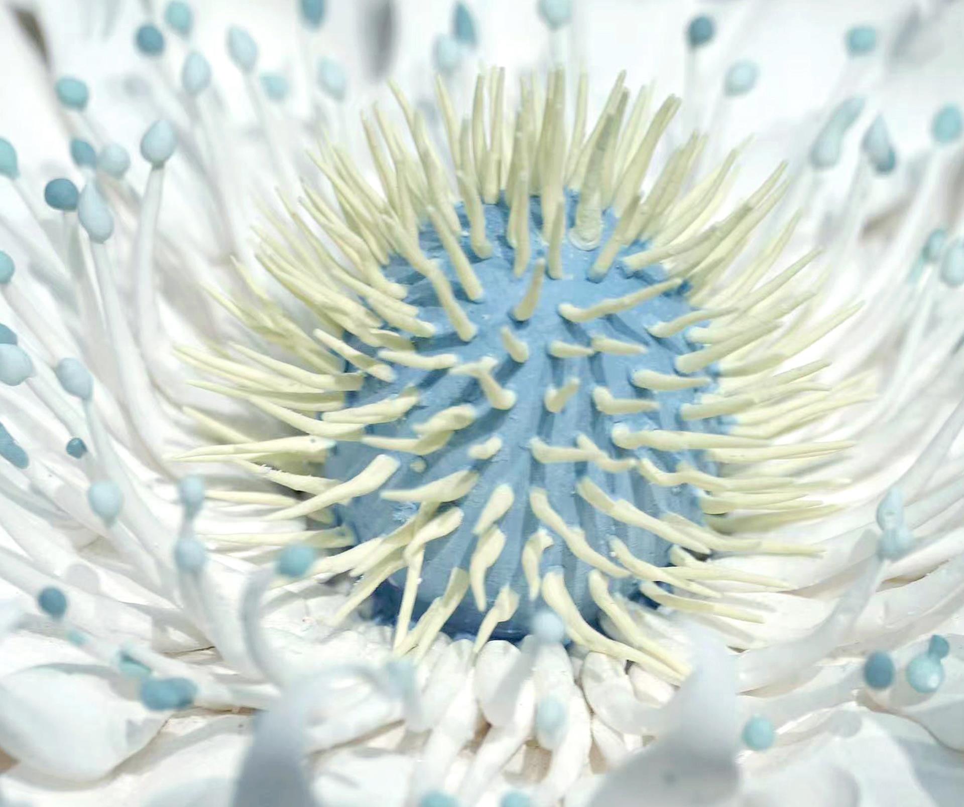 《欣欣向荣》的灵感来源于微距视角下的植物形态,微距视角下植物的形态是一个充满惊喜的宇宙,每一处细节都展现着独特的自然美感与旺盛的生命力,作者希望通过创作,向人们展示植物平日被忽视的细腻、坚韧与生命力,同时唤起人们对生命的更深层次的理解和对大自然的敬畏。植物在微观世界中蓬勃顽强的生命力成为了作品《欣欣向荣》的核心主题。它象征着生机勃勃、繁荣昌盛,是顽强生命力的美好诠释,也是对美好未来的期许。