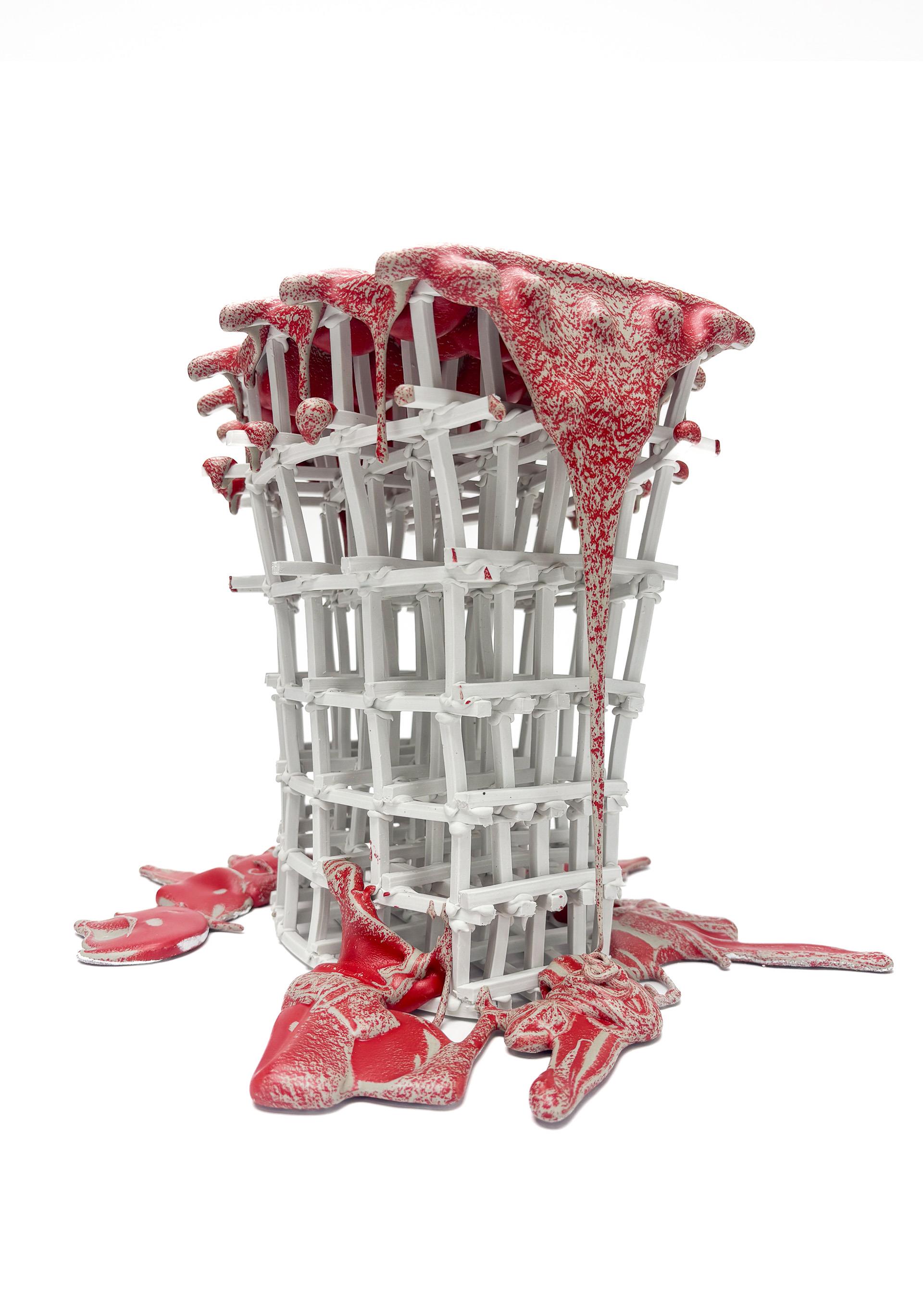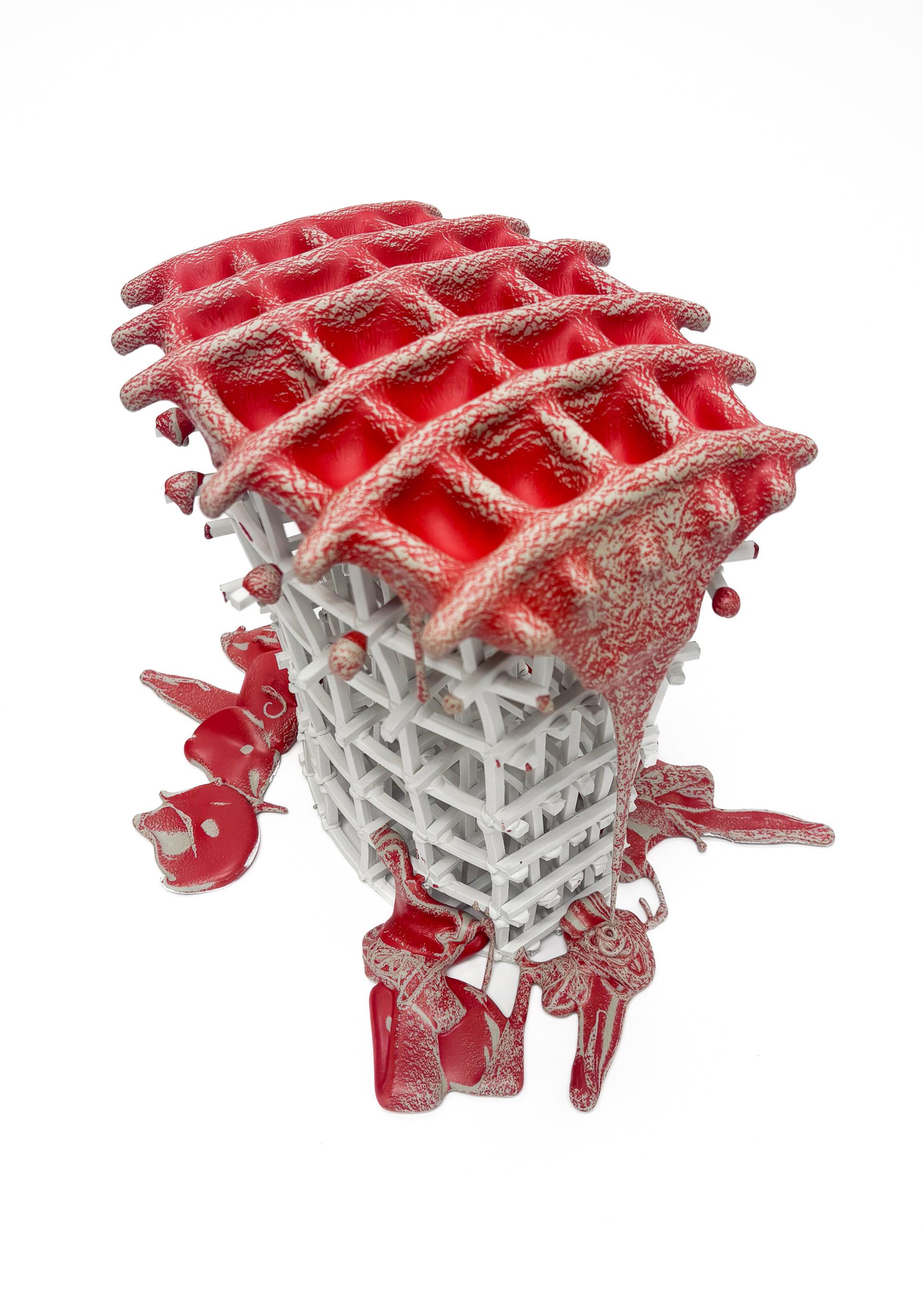 我在作品中探索转变,聚焦于结构与材质的双重维度。窑炉成为解构的载体。我创作的瓷质网格系统常始于数字渲染图,再经手工精雕细琢而成。这些结构上覆盖了充满流动、伸展效果的表层,在烧制应力作用下任其扭曲或塌陷。它们揭示了软硬之间的关系、流动的膜状,以及这些对立元素交汇的瞬间。作品力求将精心构筑与不可预测性相融合,将无需状态的一瞬间定格在作品中。