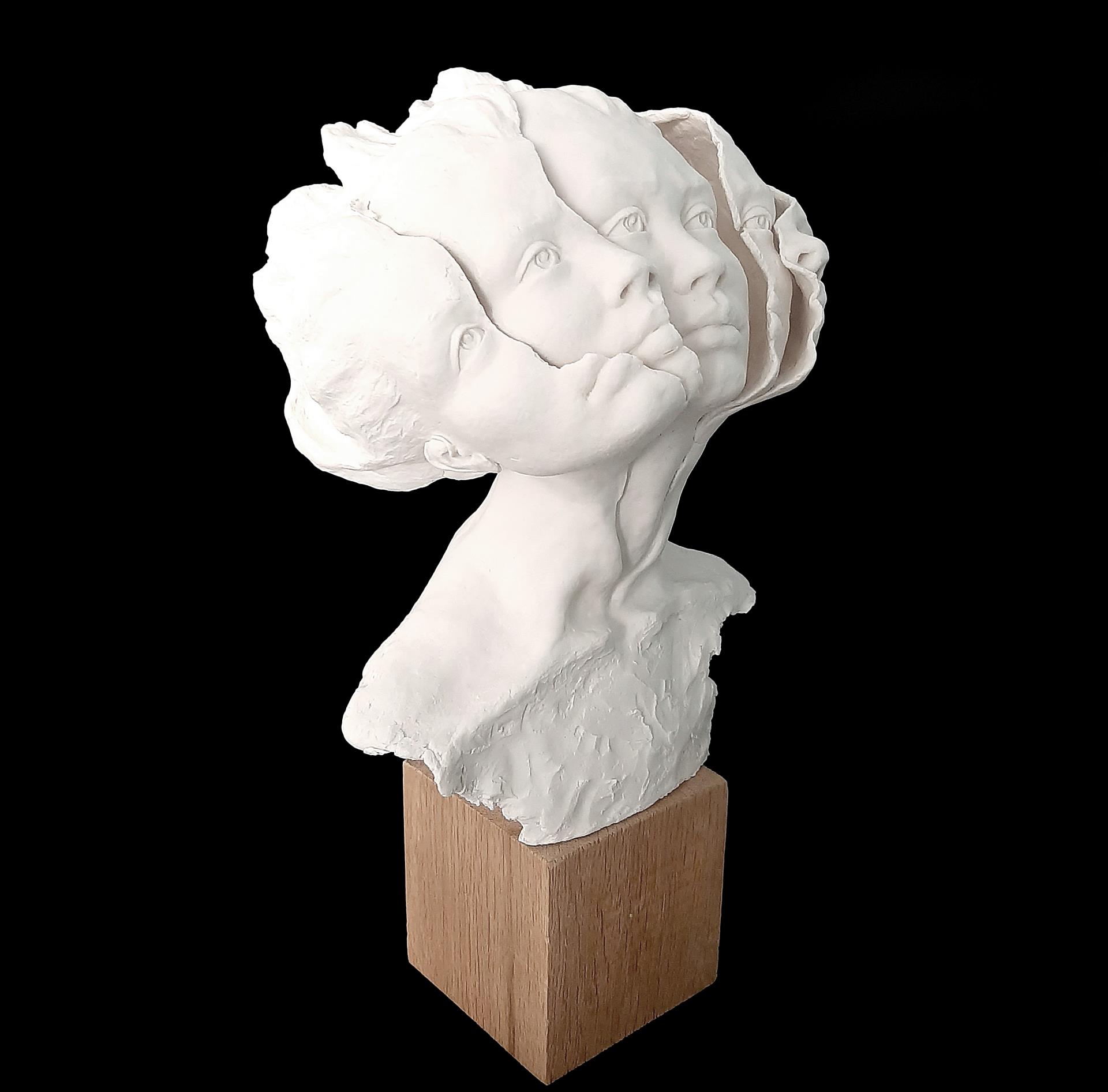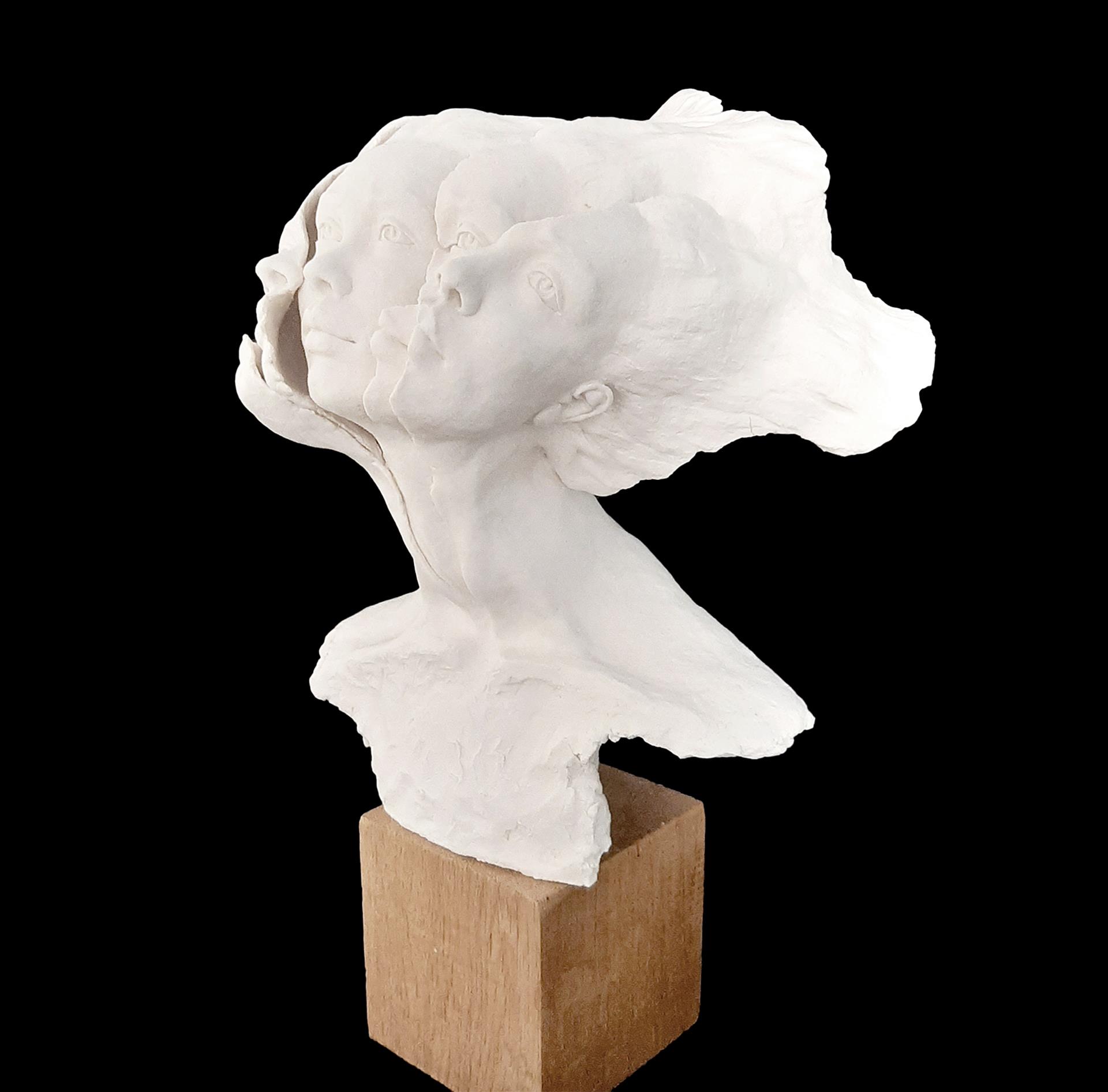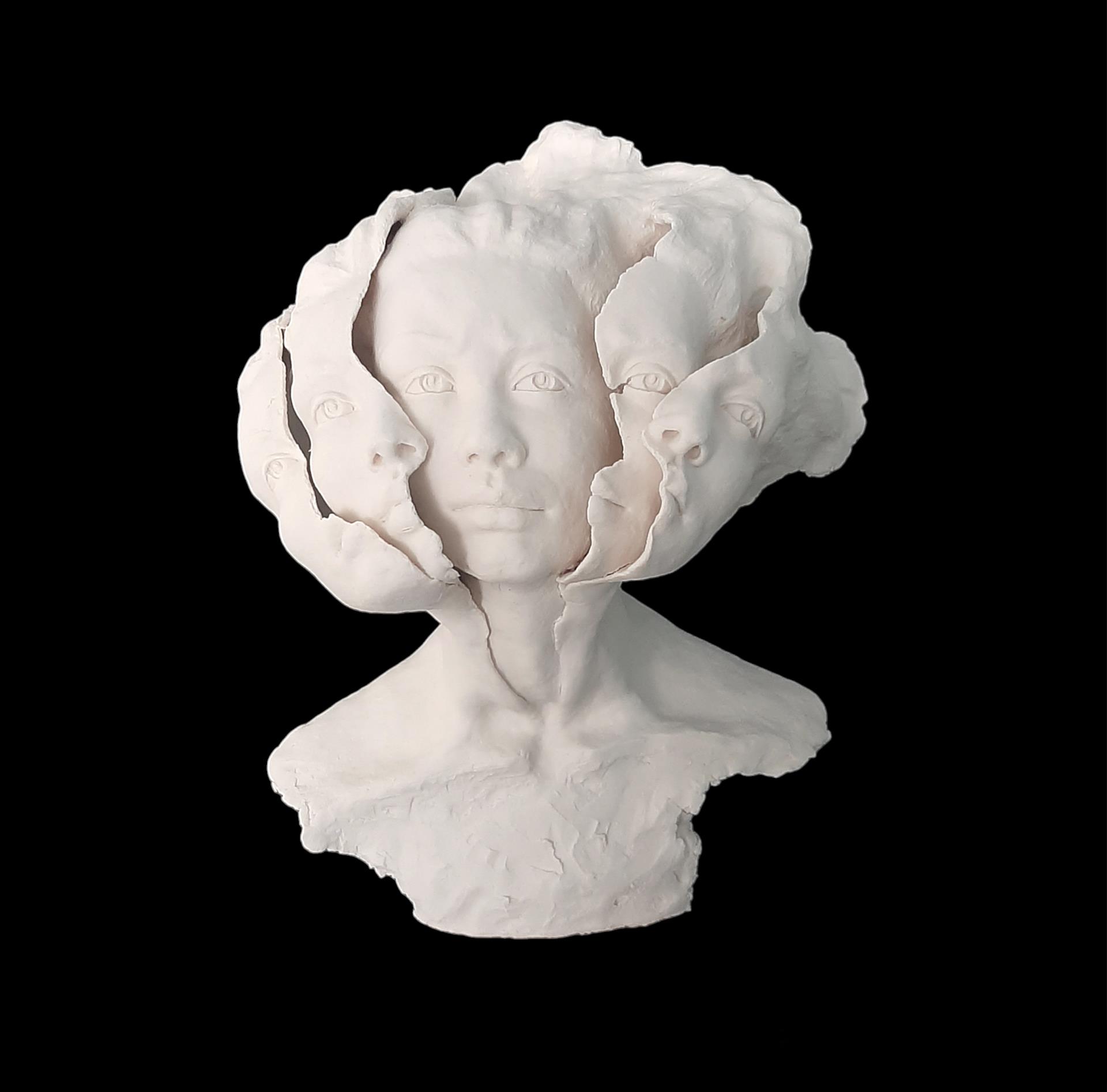 人体,尤其是面部,以及对材质的不断探索,一直激发着我的创作灵感。我常以人类历史或经历为切入点,进行雕塑创作。这件作品重点在于身份认同,并承载着我个人对揭示隐秘、展现痛苦与压力、修复破碎观念、探索蜕变过程的执着追求。