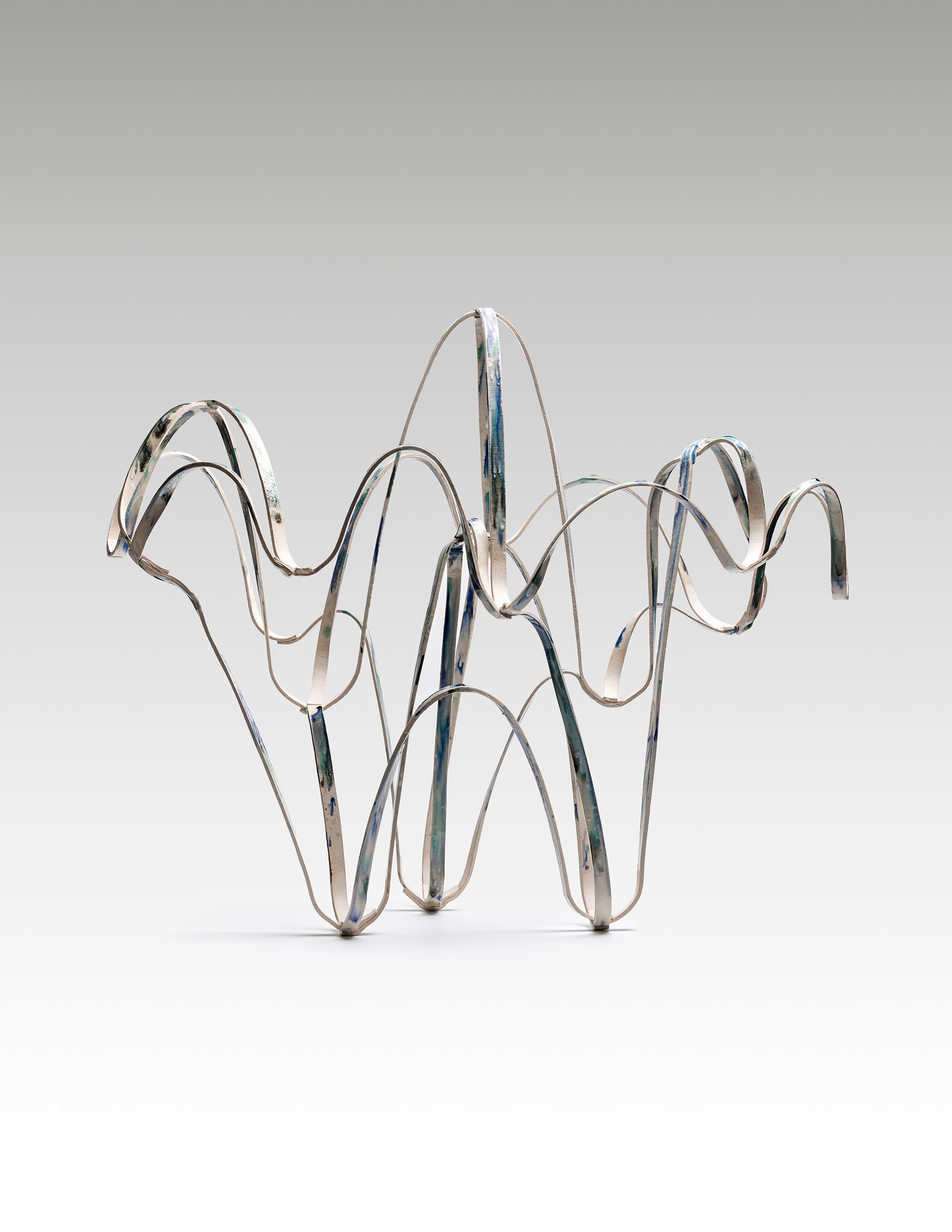 在陶瓷制作过程中,我们利用地心引力使泥条自然下垂。而在烧制时,随着温度的升高,泥条会更自然的变化,形成了流畅的曲线。此时,釉料也随着泥条的曲线顺势流淌。烧制完成后,一切就像按下了暂停键,飞扬的飘带突然静止,流动的山泉瞬间定格,这件作品是动与静的结合。 作品在制作时使用了纤维粘土,使泥条的柔韧性和延展性能更好的发挥。作品体量较大,由二人齐心协力完成,制作过程精细谨慎,仿佛大家都停止了呼吸。 我们一直以泥条作为媒介来创作作品。之前我们使用密集无序的编织方法创作了《编织成器》系列。如今,我们使用新的组合方式,使作品给人带来新的感受。每一次新的感受都鼓励着我们继续前行,不断挑战工艺难度,打破传统陶艺的壁垒。